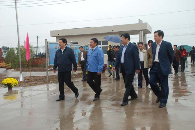 2008年9月27日上午,安陽市委書記張廣智、市長張笑東和市政協(xié)主席趙微等領導率領市有關部門一行人冒著霏霏細雨到我公司考察指導工作。