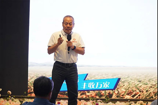 安陽(yáng)市喜滿地肥業(yè)有限責(zé)任公司董事長(zhǎng)崔俊儀分享了“優(yōu)質(zhì)稻用肥管理要點(diǎn)”。