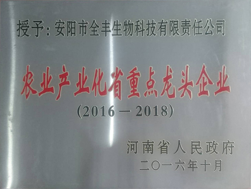 榮獲2016年-2018年“農(nóng)業(yè)產(chǎn)業(yè)化省重 點龍頭企業(yè)”
