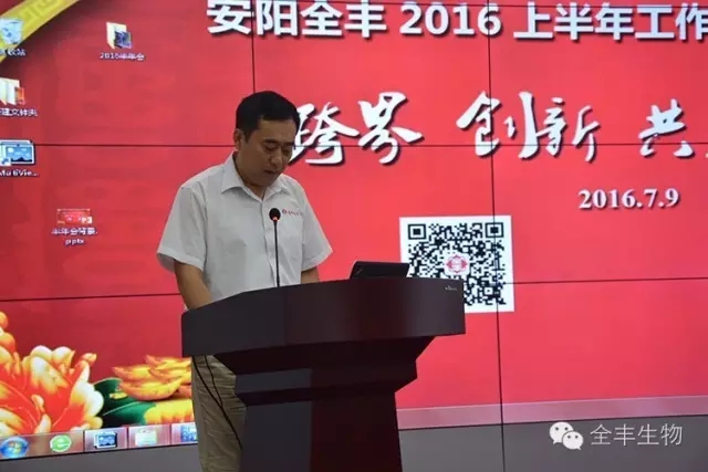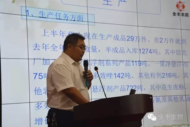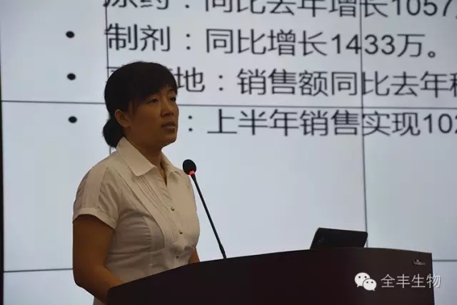 全豐集團制劑分公司張曉林就安陽全豐上半年的生產和銷售情況向大家匯報