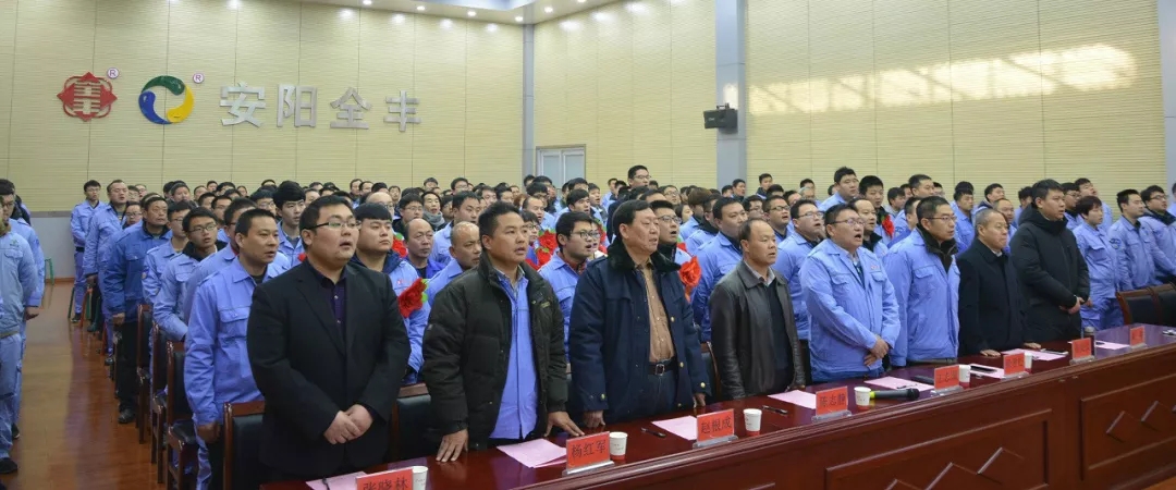 冬日的暖陽照在全豐干凈整潔的道路上,自信歡樂的笑容洋溢在全豐人的臉上。2018年2月9日上午八點(diǎn)半,伴隨著《全豐之歌》的齊聲高唱,全豐公司2017年度總結(jié)表彰暨聯(lián)歡會(huì)隆重召開。公司董事長(zhǎng)、總經(jīng)理王志國及其他董事會(huì)、監(jiān)事會(huì)成員,各分公司、部門負(fù)責(zé)人以及員工代表參加了會(huì)議。