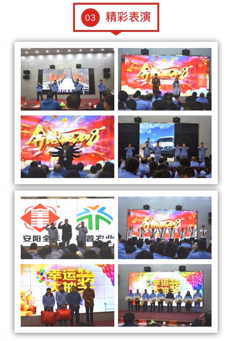 隆重的總結(jié)表彰活動(dòng)結(jié)束后,以“奔跑吧2018”為主題的聯(lián)歡會(huì)拉開序幕。原藥分公司的一曲《我是中國人》唱出了全豐人的豪邁,太行培訓(xùn)學(xué)校表演的舞蹈《舞動(dòng)青春》和制劑分公司表演的《新春舞會(huì)》有異曲同工之妙,博得現(xiàn)場(chǎng)陣陣掌聲,標(biāo)普公司表演的小品《我是飛行員》把一個(gè)失戀青年加入飛防隊(duì)伍后的徹底蛻變刻畫得惟妙惟肖。飛防隊(duì)的小伙子們也帶來驚喜,太極拳表演柔中帶剛、虎虎生威,生產(chǎn)技術(shù)部的男女聲獨(dú)唱和財(cái)務(wù)部的二胡表演各具特色,活動(dòng)現(xiàn)場(chǎng)的幸運(yùn)抽獎(jiǎng)環(huán)節(jié)更是讓現(xiàn)場(chǎng)歡呼聲和掌聲此起彼伏。歡笑聲中,全豐人告別了2017年,2018年我們攜手并進(jìn),再創(chuàng)輝煌!全豐人贏戰(zhàn)2018!加油干!
