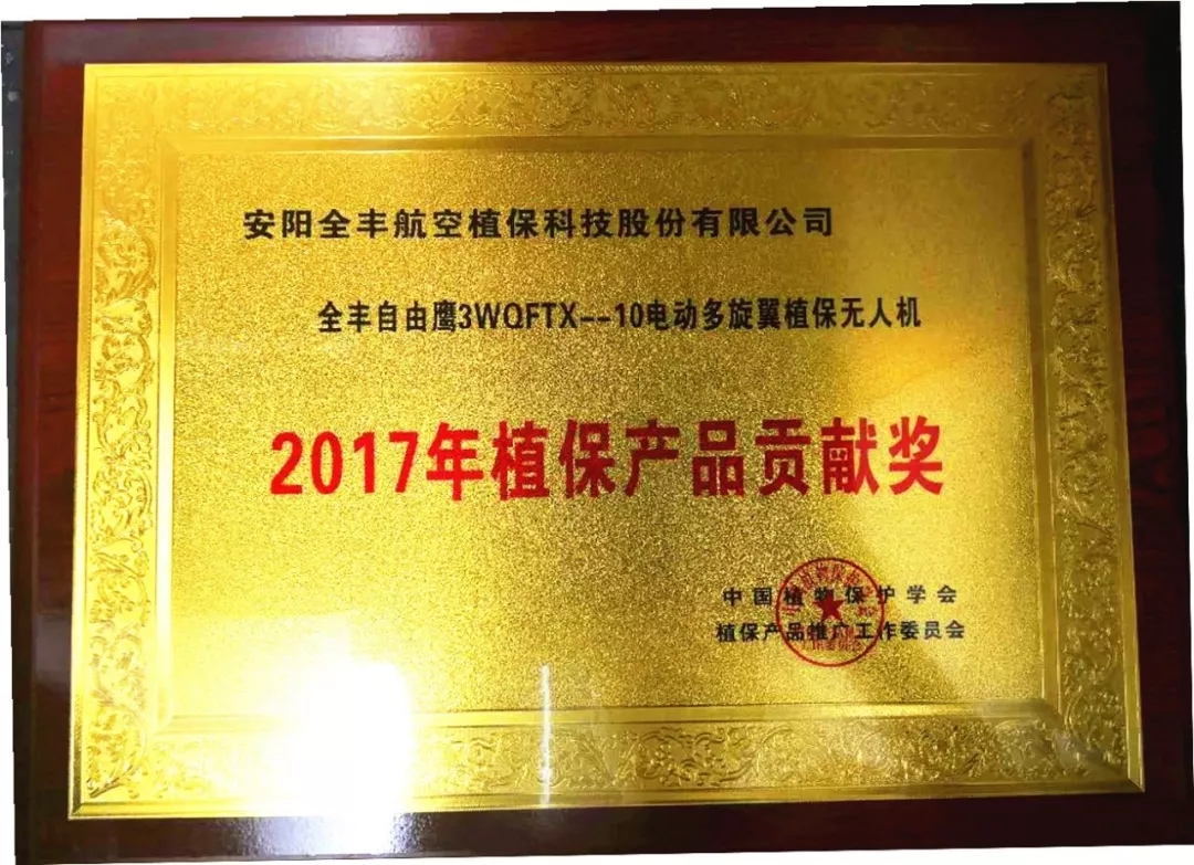 “植保產(chǎn)品貢獻(xiàn)獎(jiǎng)”是由中國(guó)植保學(xué)會(huì)植保產(chǎn)品推廣委員會(huì)主辦,以推廣優(yōu)質(zhì)產(chǎn)品、表彰優(yōu)秀個(gè)人為目的,從2013年開(kāi)始已經(jīng)連續(xù)成功主辦了5屆。在本屆評(píng)選活動(dòng)中,安陽(yáng)全豐航空兩款無(wú)人機(jī)上榜,這是對(duì)全豐航空促進(jìn)農(nóng)業(yè)機(jī)械化進(jìn)程、確保土壤健康和農(nóng)藥零增長(zhǎng)做出貢獻(xiàn)的肯定。
