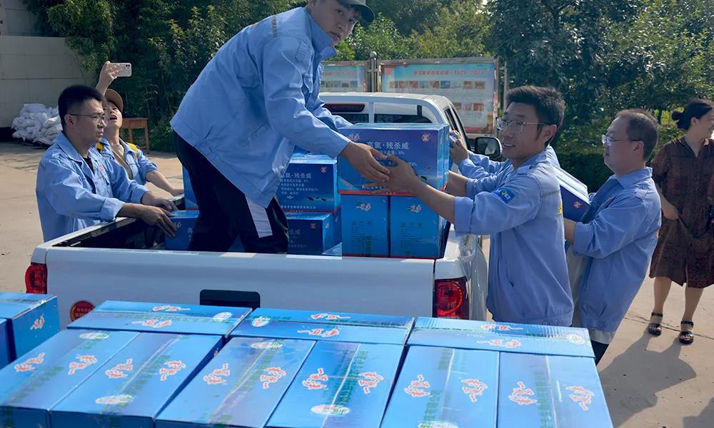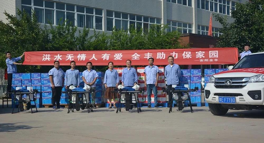 安陽全豐在自身蒙受財(cái)產(chǎn)損失的情況下,不忘企業(yè)使命,勇于承擔(dān)社會(huì)責(zé)任,心系受災(zāi)地區(qū),開展生產(chǎn)自救的同時(shí),公司董事長、總經(jīng)理王志國第一時(shí)間帶領(lǐng)員工積極籌措物資,緊急行動(dòng)起來,聯(lián)系湯陰縣、安陽縣、北關(guān)區(qū)、文峰區(qū)當(dāng)?shù)丶t十字會(huì),向受災(zāi)嚴(yán)重地區(qū)捐贈(zèng)施必達(dá)、金處方、S誘抗素、“蚊蠅一夏凈”等物資將近50余萬元,并免費(fèi)提供配套的無人機(jī)消殺服務(wù)。